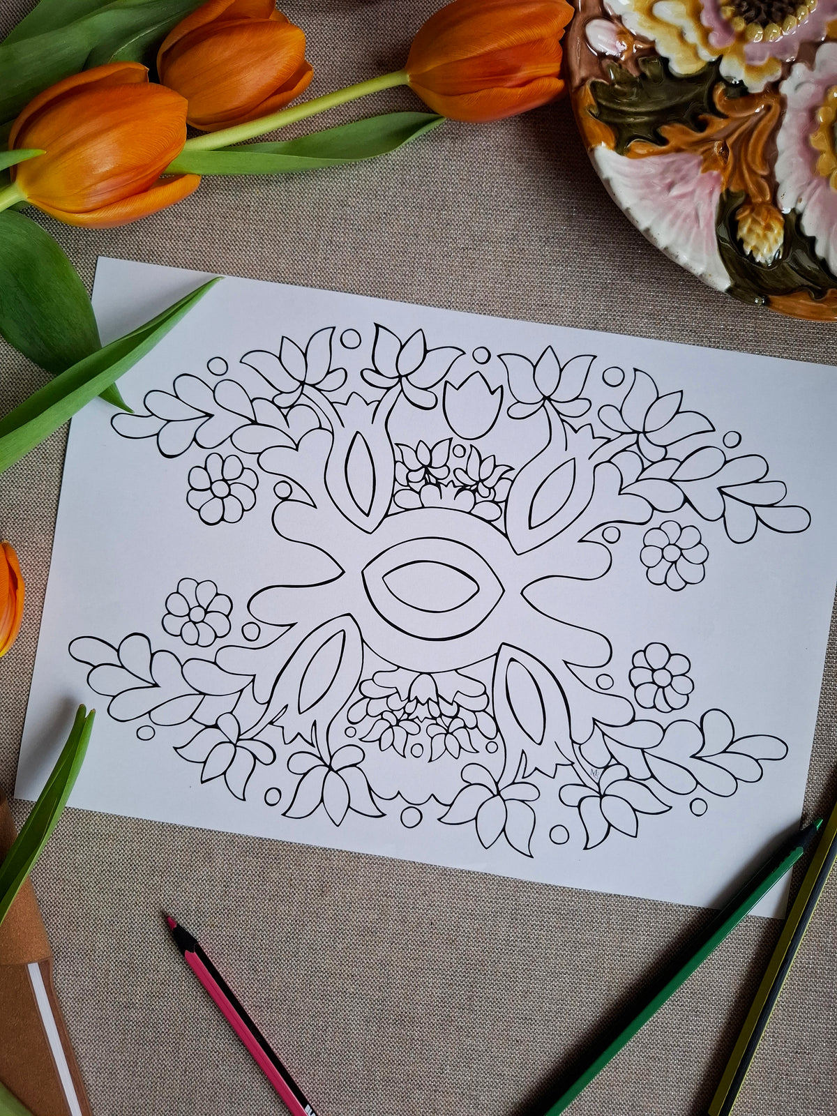 Hand-drawn printable line art created for slow coloring and mindful creative time.